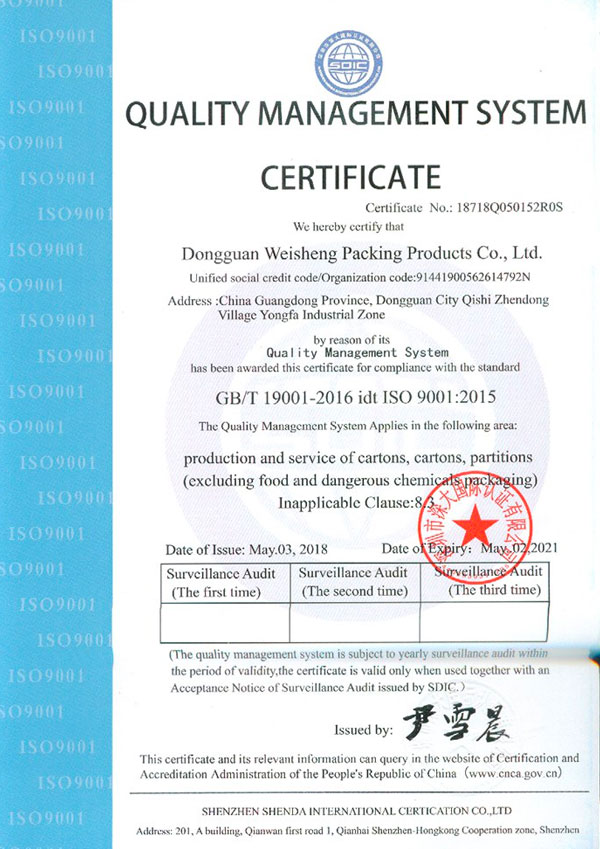 東莞市偉盛包裝制品有限公司成立于2010年,已通過ISO9001質(zhì)量體系和ISO14001環(huán)境體系認(rèn)證,公司占地面積5000平方米,十幾年的發(fā)展,公司一直致力于紙箱、紙盒、啤盒、彩盒、飛機(jī)盒等紙制品,廣泛應(yīng)用于電子,家私、工藝品、燈飾、五金、塑膠等產(chǎn)品的包裝上,歡迎新老客戶致電垂詢。